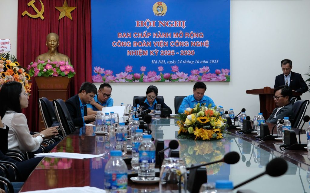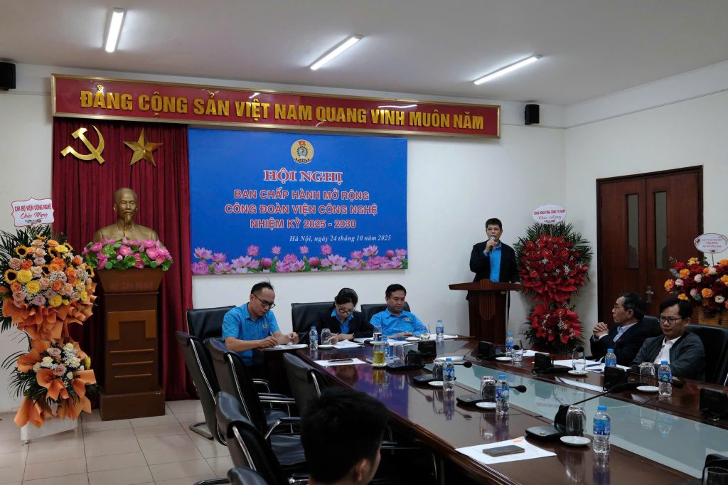 Ngày 24 tháng 10 năm 2025 tại Viện Công nghệ, Hội nghị Ban chấp hành mở rộng Công đoàn Viện Công nghệ Nhiệm kỳ 2025-2030 đã được tổ chức long trọng với sự tham dự của Chi ủy, Ban Giám đốc, trưởng, phó các đơn vị, công đoàn, đoàn thanh niên cùng các đồng chí là đại diện các tổ công đoàn đã về dự đông đủ.